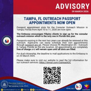 PRESS RELEASEWDC-9-2026 09 March 2026 Embassy Press and Information Section info@phembassy-us.org WASHINGTON, D.C. –